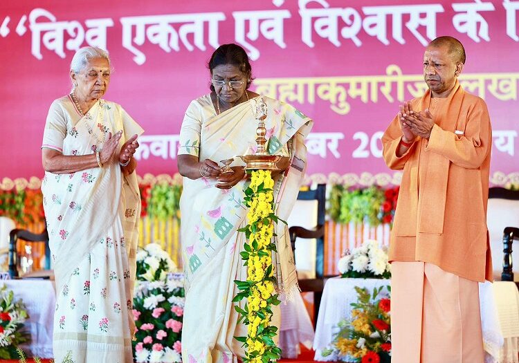 प्रजापिता ब्रह्माकुमारीज ईश्वरीय विश्वविद्यालय द्वारा लखनऊ में आयोजित विश्व एकता एवं विश्वास के लिए ध्यान (योग) के राज्य स्तरीय उद्घाटन समारोह का शुभारंभ राष्ट्रपति मुर्मु ने दीप प्रज्ज्वलन के साथ किया। उन्होंने ब्रह्मकुमारियों को कलश सौंपा तथा भ्राताओं को ब्रह्मकुमारीज की ध्वजा प्रदान की। कार्यक्रम में छात्राओं ने पारंपरिक नृत्य शैली में सांस्कृतिक प्रस्तुति भी दी। इस दौरान ब्रह्मकुमारी राधा जी ने ईश्वरीय परिवार की ओर से स्वागत वक्तव्य दिया। भ्राता नथमल जी ने वैश्विक एकता और विश्वास को बढ़ावा देने के लिए राजयोग को अपनाने तथा विकारों को दूर करने का आह्वान किया। कार्यक्रम में मुख्यमंत्री योगी आदित्यनाथ, अपर महासचिव ब्रह्मकुमारीज एवं अध्यक्ष (शिक्षा शाखा, माउंट आबू) राजयोगी डॉ. ब्रह्मकुमार मृत्युंजय, निदेशक उपक्षेत्र लखनऊ राजयोगिनी ब्रह्मकुमारी राधा जी, राष्ट्रीय संयोजक कटक (ओडिशा) राजयोगी ब्रह्मकुमार नथमल जी समेत प्रजापिता ब्रह्माकुमारीज ईश्वरीय विश्वविद्यालय के पदाधिकारी, प्रशिक्षक और साधक उपस्थित रहे।