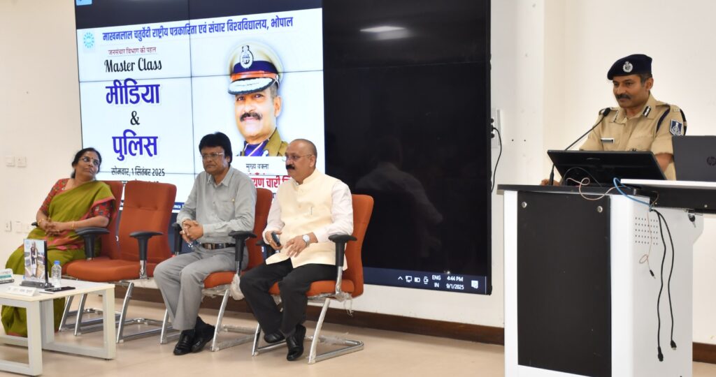 भोपाल। भोपाल के पुलिस आयुक्त श्री हरिनारायणचारी मिश्रा का कहना है कि घटनाएं कई बार जैसी दिखती हैं वैसी नहीं होतीं। अक्सर उनकी पड़ताल करने कुछ अलग ही सच उजागर होता है। वस्तुनिष्ठता के बजाए भावनाओं के आधार पर लिखने से चीजें बिगड़ सकती हैं। श्री मिश्रा आज यहां माखनलाल चतुर्वेदी राष्ट्रीय पत्रकारिता एवं संचार विश्वविद्यालय, भोपाल में जनसंचार विभाग द्वारा आयोजित ‘मीडिया और पुलिस’ विषय आयोजित पर मास्टर क्लास को संबोधित कर रहे थे। इस मौके पर विश्वविद्यालय के कुलगुरु श्री विजय मनोहर तिवारी, कुलसचिव प्रो. पी. शशिकला, विभागाध्यक्ष प्रो.संजय द्विवेदी मौजूद रहे।