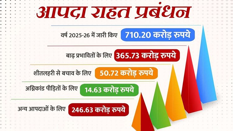 लखनऊ। उत्तर प्रदेश सरकार बाढ़, भूकंप, सूखा, अग्निकांड, शीतलहर एवं मानव-जीव संघर्ष जैसी आपादाओं से प्रभावित लोगों को राहत पहुंचाने के प्रति पूरी तरह प्रतिबद्ध और संवेदनशील है। मुख्यमंत्री योगी आदित्यनाथ के मार्गदर्शन में प्रदेश का राहत आयुक्त कार्यालय आपादा प्रभाव को कम करने तथा पीड़ितों को त्वरित सहायता प्रदान करने के लिए सभी संभव प्रयास कर रहा है। इसी क्रम में वित्तीय वर्ष 2025-26 में आपदा राहत निधि के तहत 710.12 करोड़ रुपये की धनराशि आवंटित की गई है। इस धनराशि से विभिन्न प्राकृतिक एवं मानव जनित आपदा पीड़ितों को सहायता प्रदान की गई। इसके साथ ही राज्य में आपदा राहत तंत्र को अधिक प्रभावी बनाने के प्रयास किये गए हैं, जिससे वर्तमान में उत्तर प्रदेश आपदा प्रबंधन के क्षेत्र में एक मजबूत मॉडल राज्य के रूप में उभर रहा है।