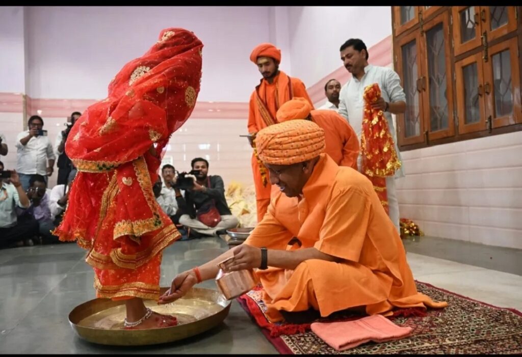 गोरक्षपीठाधीश्वर ने सबसे पहले कन्याओं के पांव पखारे। उनके माथे पर रोली, चंदन, अक्षत आदि का तिलक लगाया। दुर्वा से उनका अभिषेक किया, माला पहनाई। चुनरी ओढ़ाकर एवं दक्षिणा-उपहार प्रदान कर आशीर्वाद लिया। उन्होंने अन्न क्षेत्र में सभी कन्याओं व बटुकों की श्रद्धाभाव से आरती भी उतारी। पूजन के बाद इन कन्याओं को मंदिर की रसोई में पकाया गया ताजा भोजन प्रसाद मुख्यमंत्री योगी आदित्यनाथ ने अपने हाथों से परोसा। आयोजन में आईं सभी कन्याओं को पूजनोपरांत चुनरी, दक्षिणा और उपहार दिए गए।