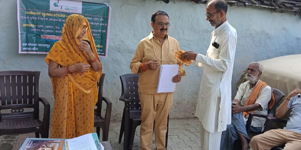 बांदा। आज बुंदेलखंड के बांदा में ग्राम पंचायत जमालपुर में आपदा एवं पर्यावरण सुरक्षा पर जागरूकता अभियान चलाया गया जिसमें लोगों को वन संरक्षण, जल संरक्षण, एवं वन्य जीव संरक्षण के साथ भूकम्प, चक्रवात,बाढ़,सूखा,लूं जैसी आपदाओं के बारे में वृहद जानकारी देकर जागरूक किया गया, चाइल्ड ट्रस्ट के राज्य समन्वयक महेंद्र सिंह गौतम ने गांव के लोगों से रुबरु होते हुए कहा कि हमें पेड़ों, जंगलों की रक्षा करते हुए अधिक से अधिक पेड़ लगाने होंगे।